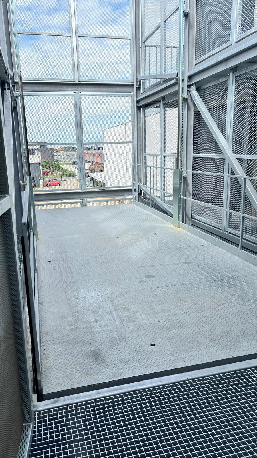 De goederenlift is 8 meter lang, 3 meter breed en 2,6 meter hoog.
